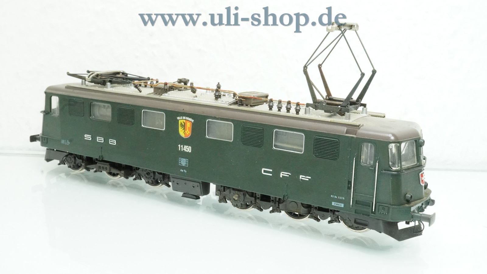 Roco H0 mit der Artikelnummer 43535 Ae 6/6 11450 der SBB. Der Artikel ist für den Betrieb mit Gleichstrom vorgesehen. Die Lok ist analog, sie kann daher nicht auf digital gesteuerten Anlagen fahren. Die Originalverpackung ist leider nicht mehr vorhanden.