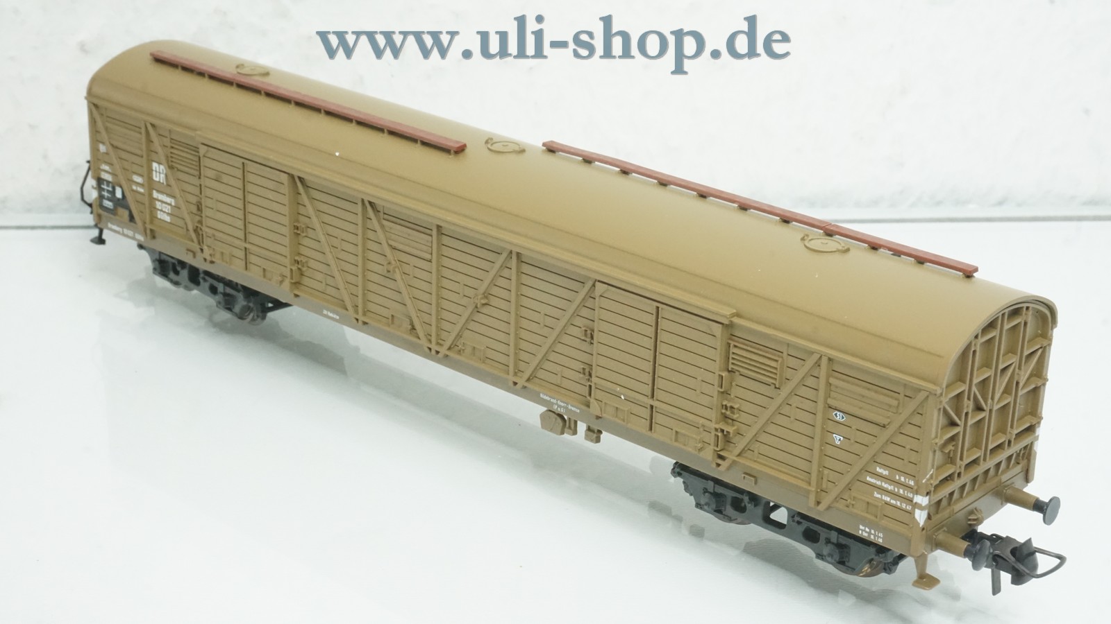 Roco H0 Güterwagen mit der Artikelnummer 4369C gedeckt Bromberg der DR. Der Artikel ist für den Betrieb mit Gleichstrom vorgesehen. Die Originalverpackung ist vorhanden.