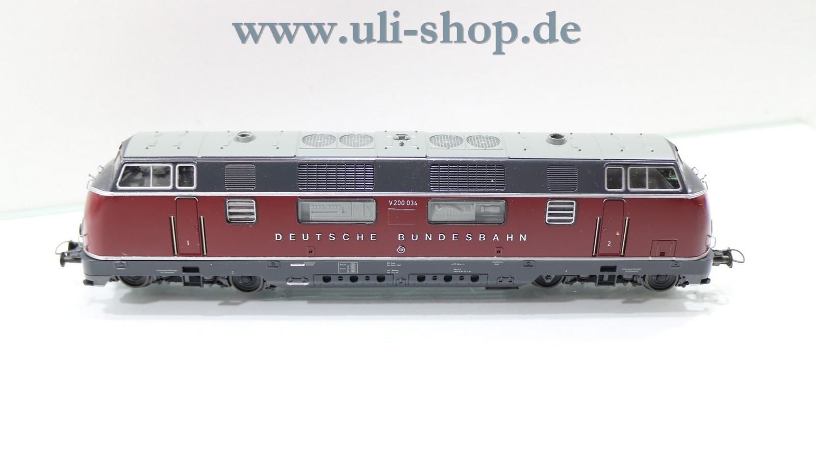Roco H0 Diesellok mit der Artikelnummer 43928 V 200 034 der DB. Der Artikel ist für den Betrieb mit Wechselstrom vorgesehen. Die Lok ist analog, sie kann daher nicht auf digital gesteuerten Anlagen fahren. Die Originalverpackung ist vorhanden.