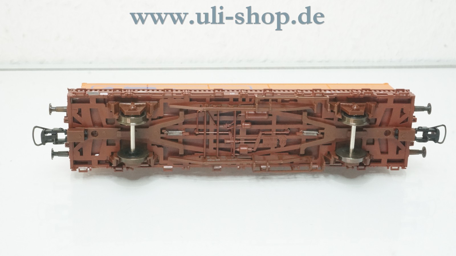 Roco H0 Güterwagen mit der Artikelnummer 4399W Rungenwagen beladen mit Container ROCO. Der Artikel ist für den Betrieb mit Gleichstrom vorgesehen. Die Originalverpackung ist vorhanden.