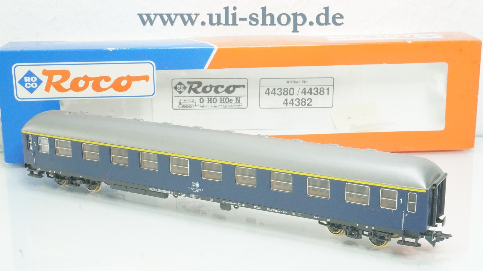 Roco H0 Personenwagen mit der Artikelnummer 44381 Schnellzugwagen der DB 1. Klasse. Der Artikel ist für den Betrieb mit Gleichstrom vorgesehen. Die Originalverpackung ist vorhanden.