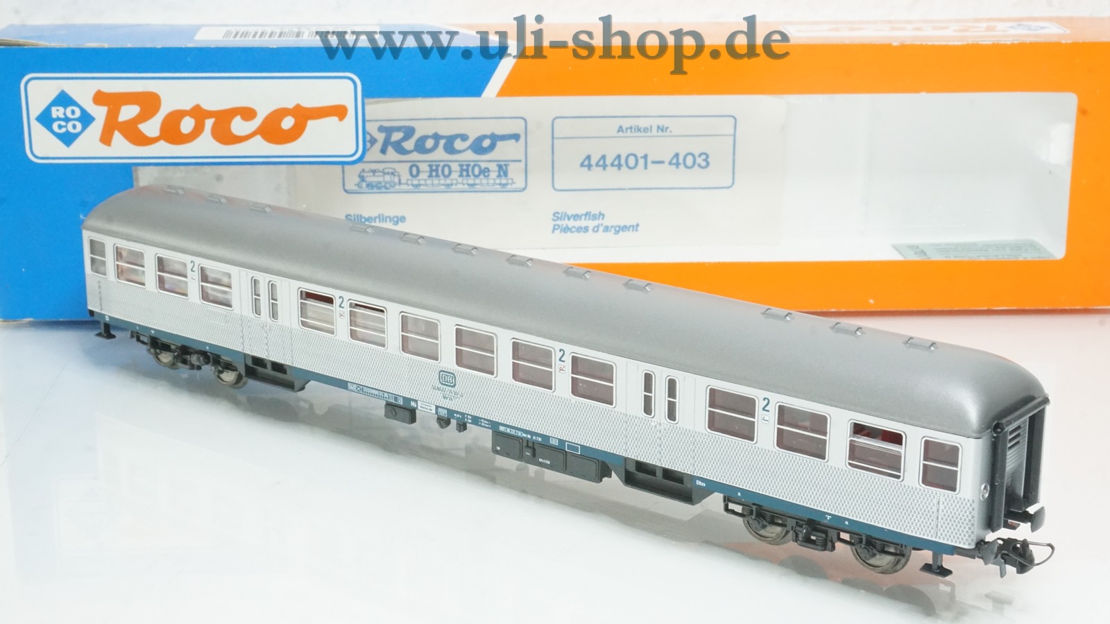 Roco H0 Personenwagen mit der Artikelnummer 44402 Silberling Nahverkehrswagen 2. Klasse. Der Artikel ist für den Betrieb mit Wechselstrom vorgesehen. Die Originalverpackung ist vorhanden.