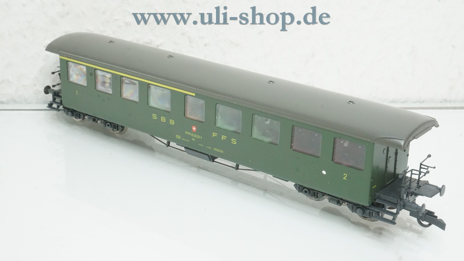Roco H0 Personenwagen mit der Artikelnummer 44730 Seetalbahnwagen 1./2. Klasse der SBB. Der Artikel ist für den Betrieb mit Wechselstrom vorgesehen. Die Originalverpackung ist vorhanden.
