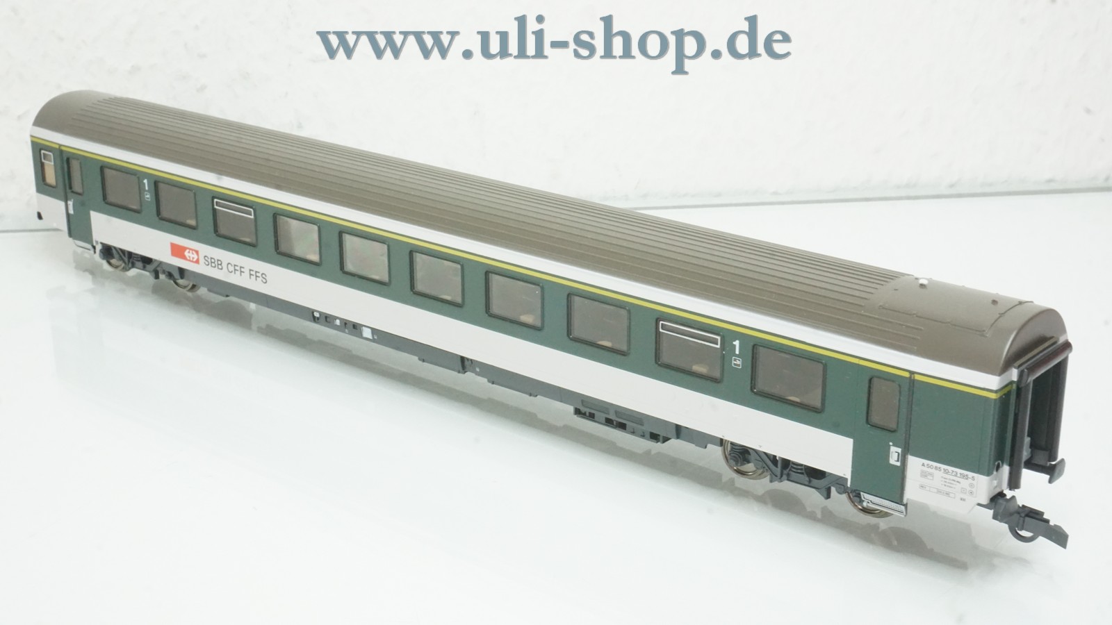 Roco H0 Personenwagen mit der Artikelnummer 44883 Eurofima-Großraumwagen 1. Klasse der SBB. Der Artikel ist für den Betrieb mit Gleichstrom vorgesehen. Die Originalverpackung ist vorhanden.