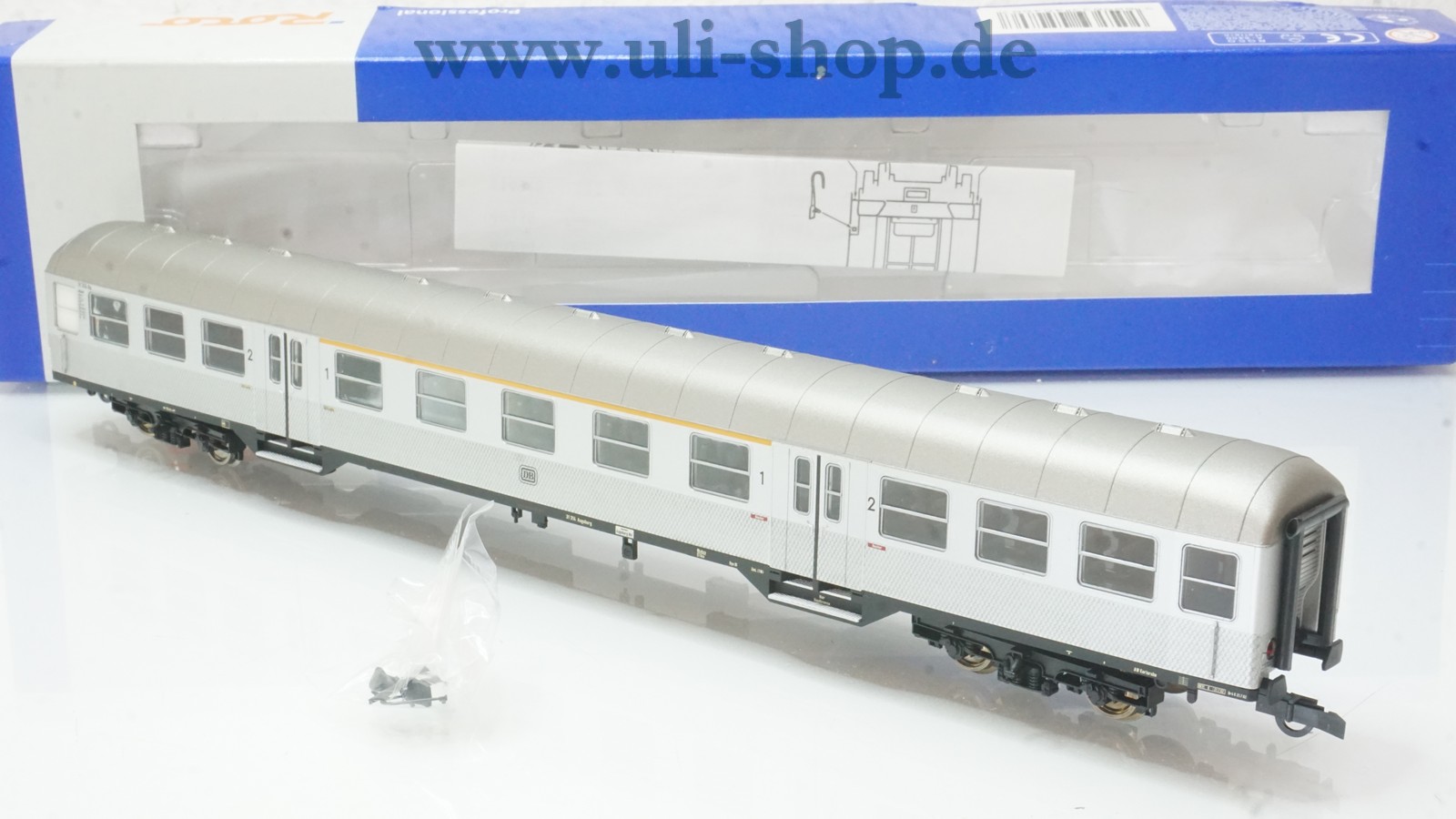 Roco H0 Personenwagen mit der Artikelnummer 45480 Nahverkehrswagen Silberling 1./2. Klasse der DB. Der Artikel ist für den Betrieb mit Gleichstrom vorgesehen. Die Originalverpackung ist vorhanden.
