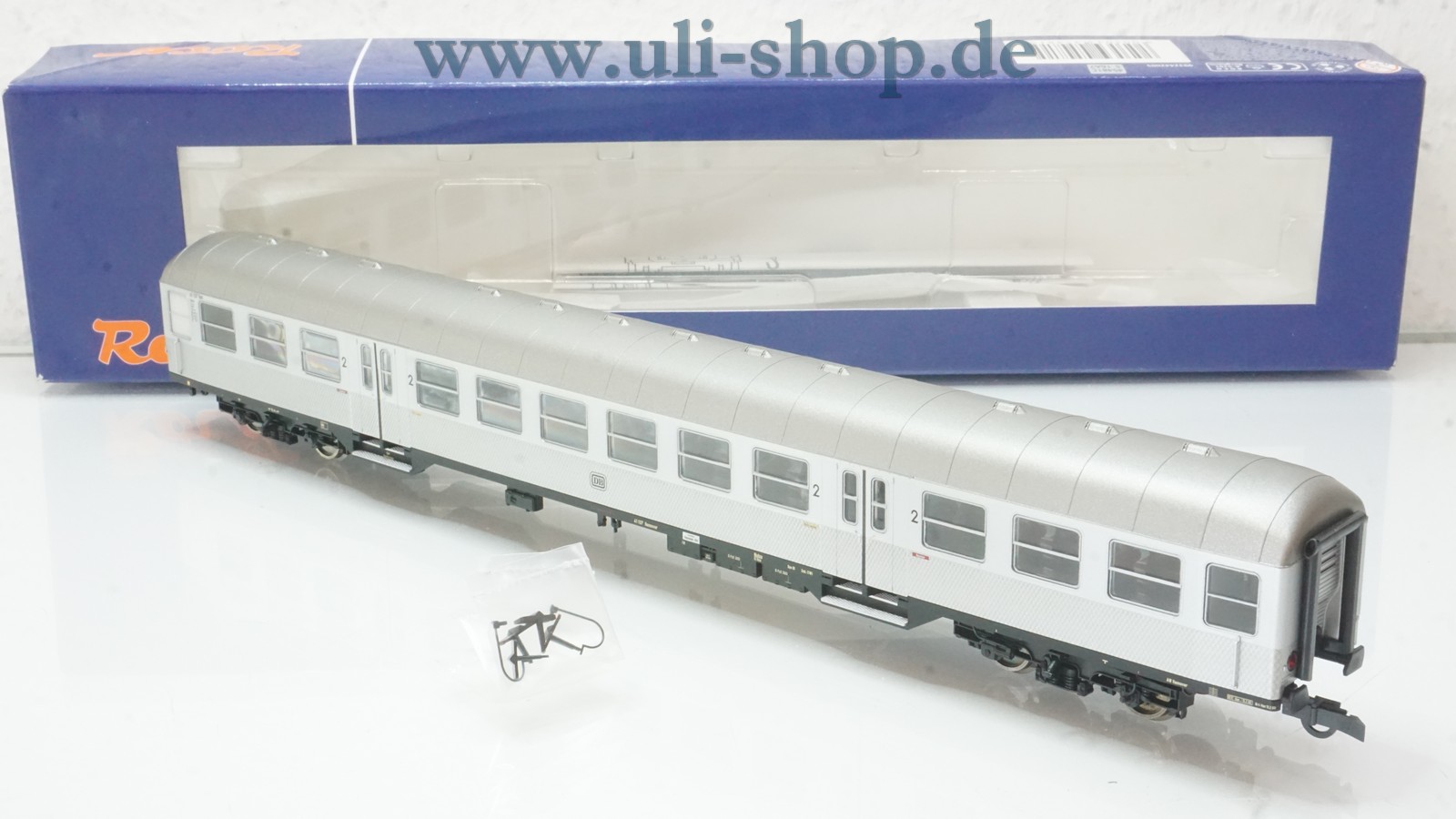 Roco H0 Personenwagen mit der Artikelnummer 45481 Nahverkehrswagen Silberling 2. Klasse der DB. Der Artikel ist für den Betrieb mit Gleichstrom vorgesehen. Die Originalverpackung ist vorhanden.