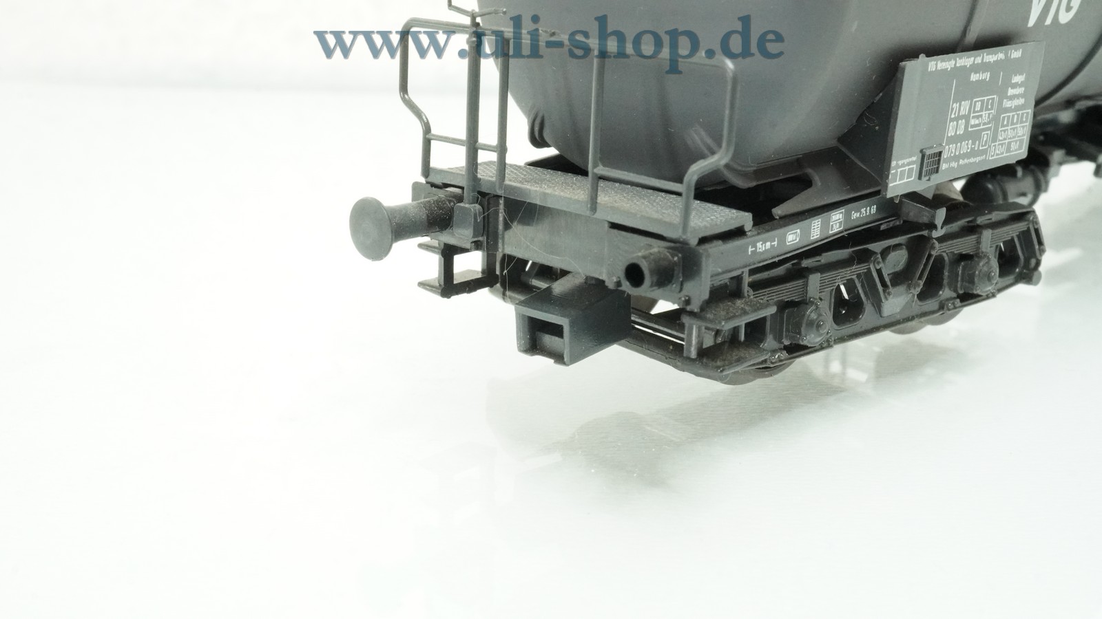 Roco H0 Güterwagen mit der Artikelnummer 46191 Kesselwagen VTG der DB. Der Artikel ist für den Betrieb mit Wechselstrom vorgesehen. Die Originalverpackung ist leider nicht mehr vorhanden. Der Kesselwagen hat die Betriebsnummer 079 0 069-0.