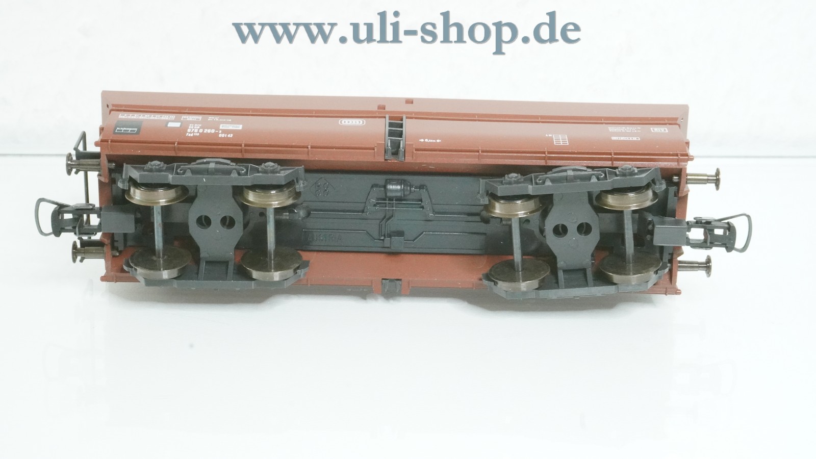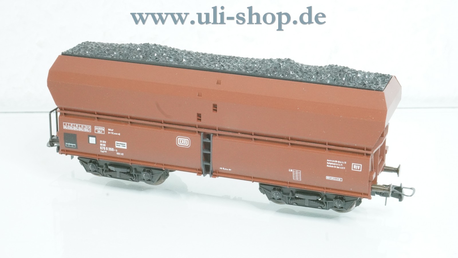 Roco H0 Güterwagen mit der Artikelnummer 46240 Selbstentladewagen beladen mit Kohle der DB. Der Artikel ist für den Betrieb mit Gleichstrom vorgesehen. Die Originalverpackung ist vorhanden.