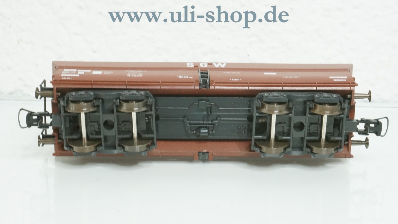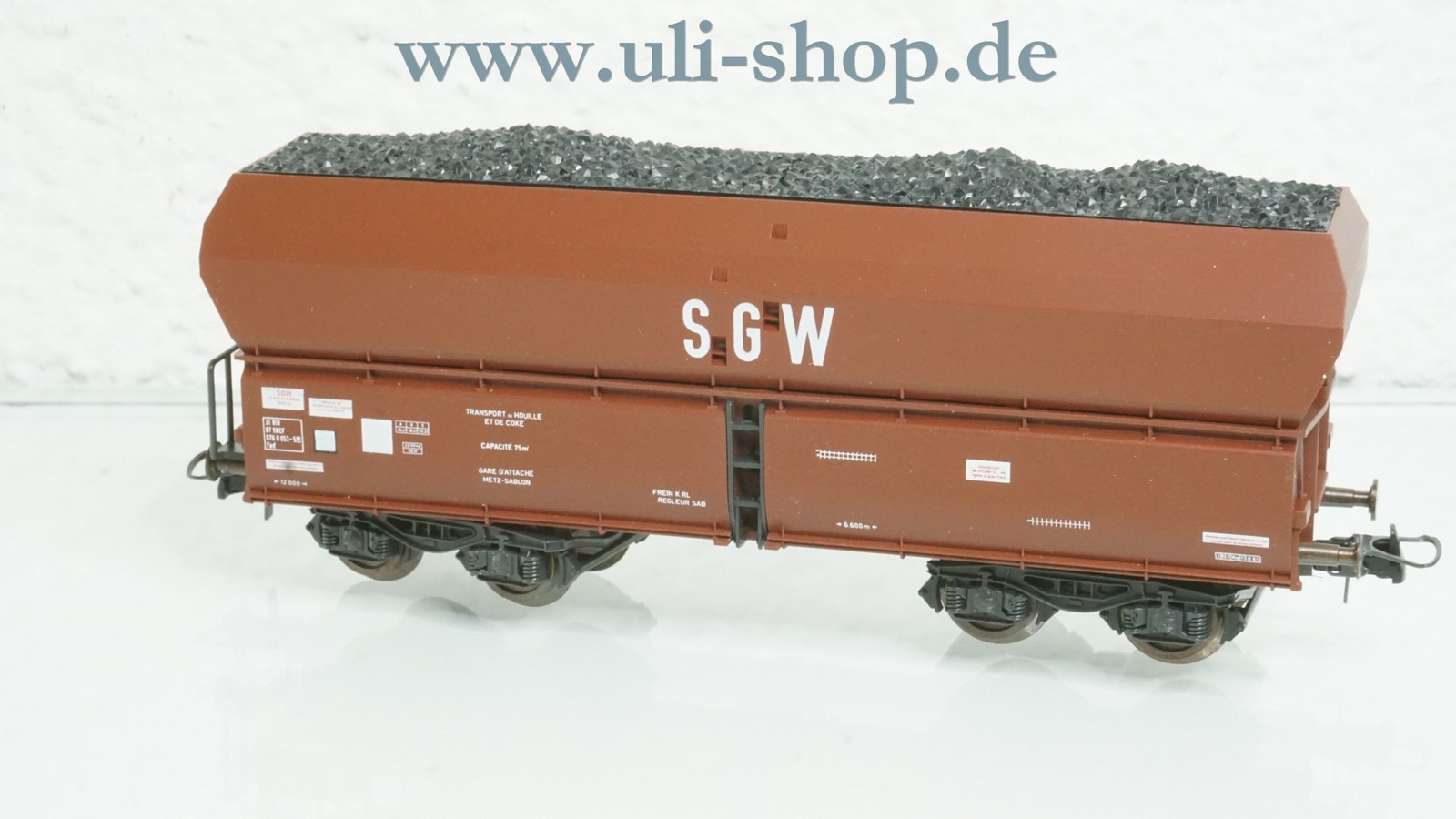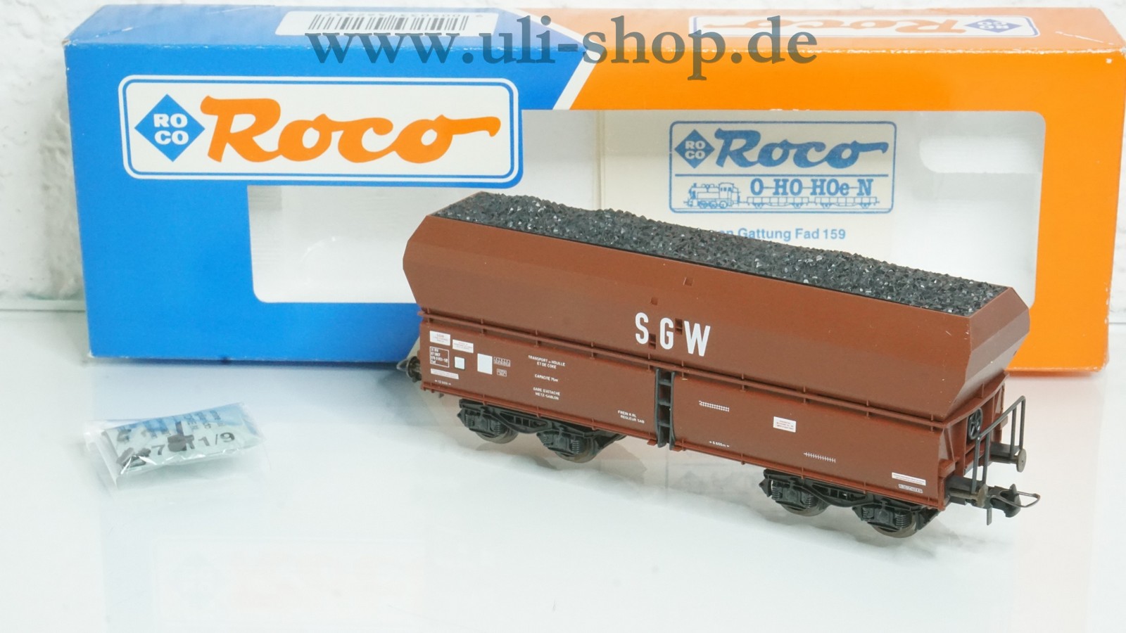 Roco H0 Güterwagen mit der Artikelnummer 46243 Selbstentladewagen SGW. Der Artikel ist für den Betrieb mit Wechselstrom vorgesehen. Die Originalverpackung ist vorhanden.