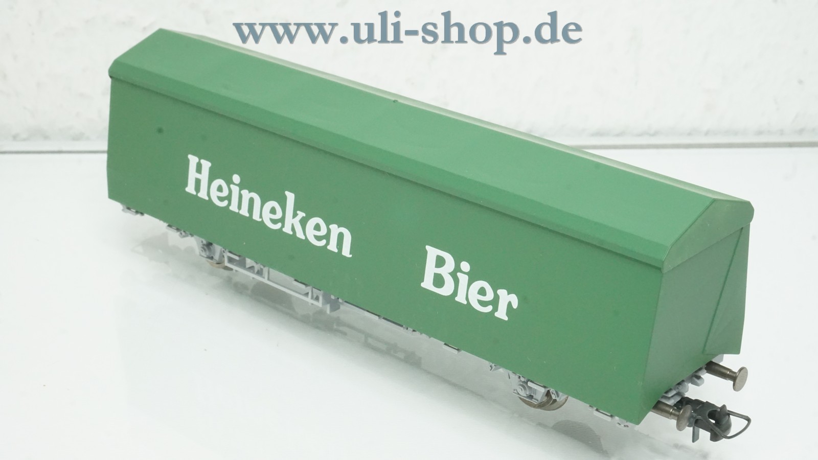 Roco H0 Güterwagen mit der Artikelnummer 46309 Bierwagen Heineken der NS. Der Artikel ist für den Betrieb mit Wechselstrom vorgesehen. Die Originalverpackung ist vorhanden.