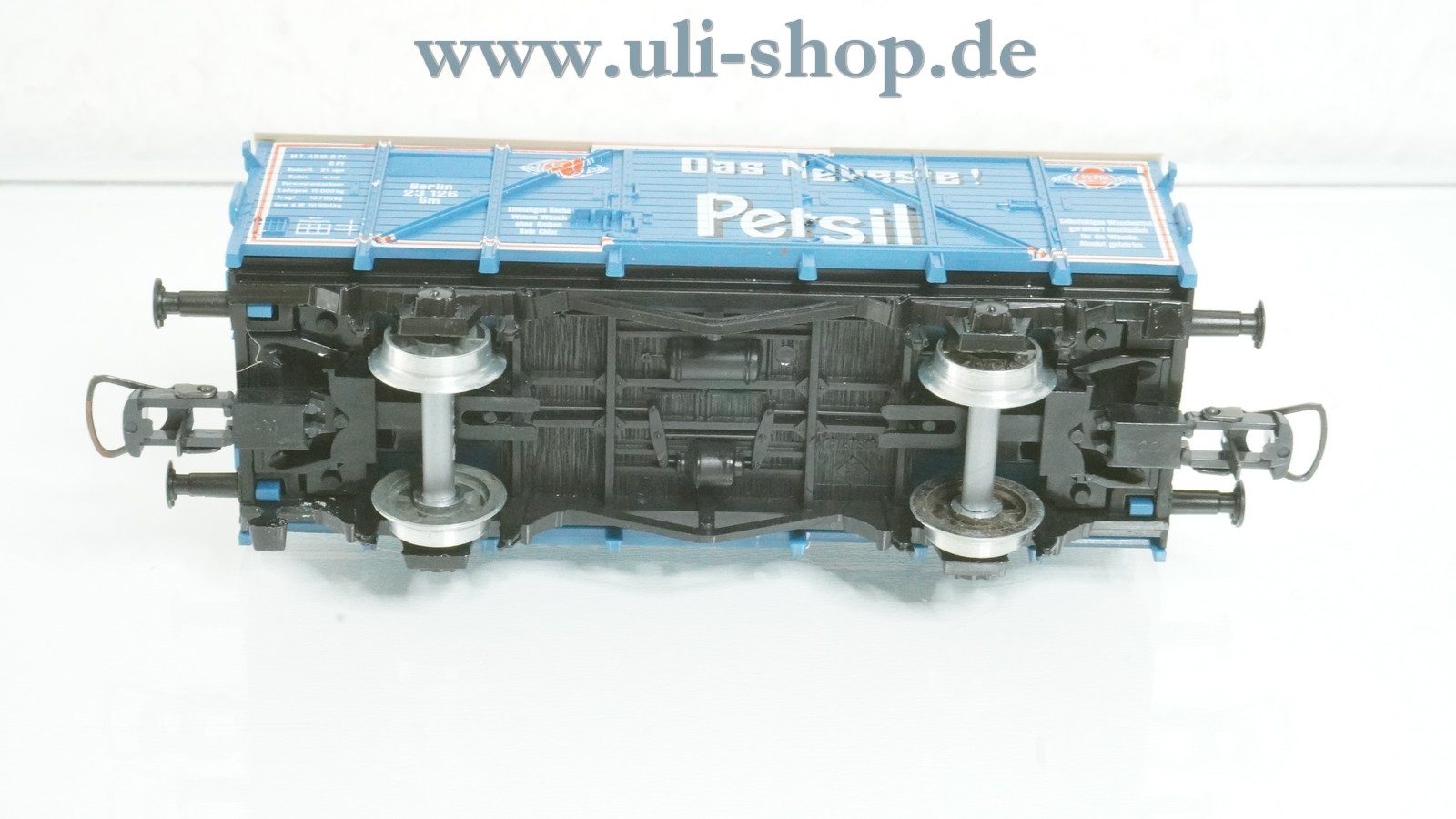 Roco H0 Güterwagen mit der Artikelnummer 47263 Gedeckter Flachdachwagen mit "Persil" Werbung der KPEV. Der Artikel ist für den Betrieb mit Gleichstrom vorgesehen. Die Originalverpackung ist vorhanden.