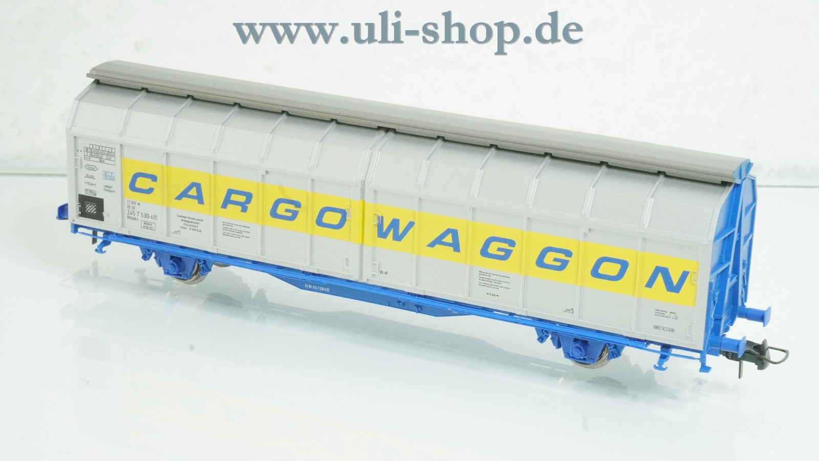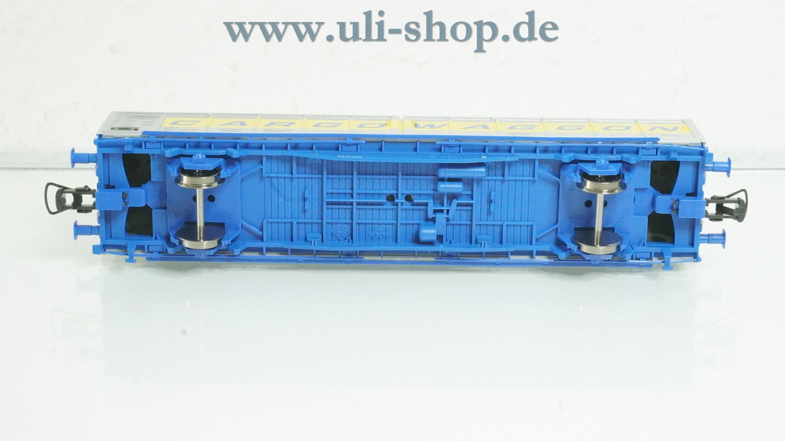 Roco H0 Güterwagen mit der Artikelnummer 47458 Schiebewandwagen CARGO WAGGON der DB. Der Artikel ist für den Betrieb mit Gleichstrom vorgesehen. Die Originalverpackung ist vorhanden. Es handelt sich um das Clubmodell 2002.