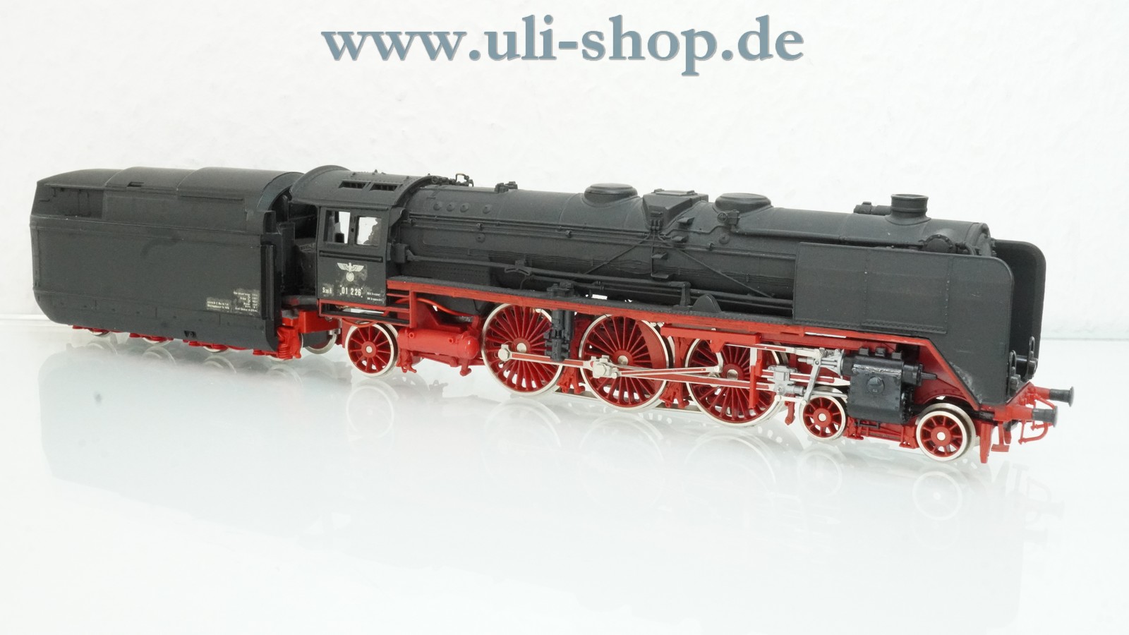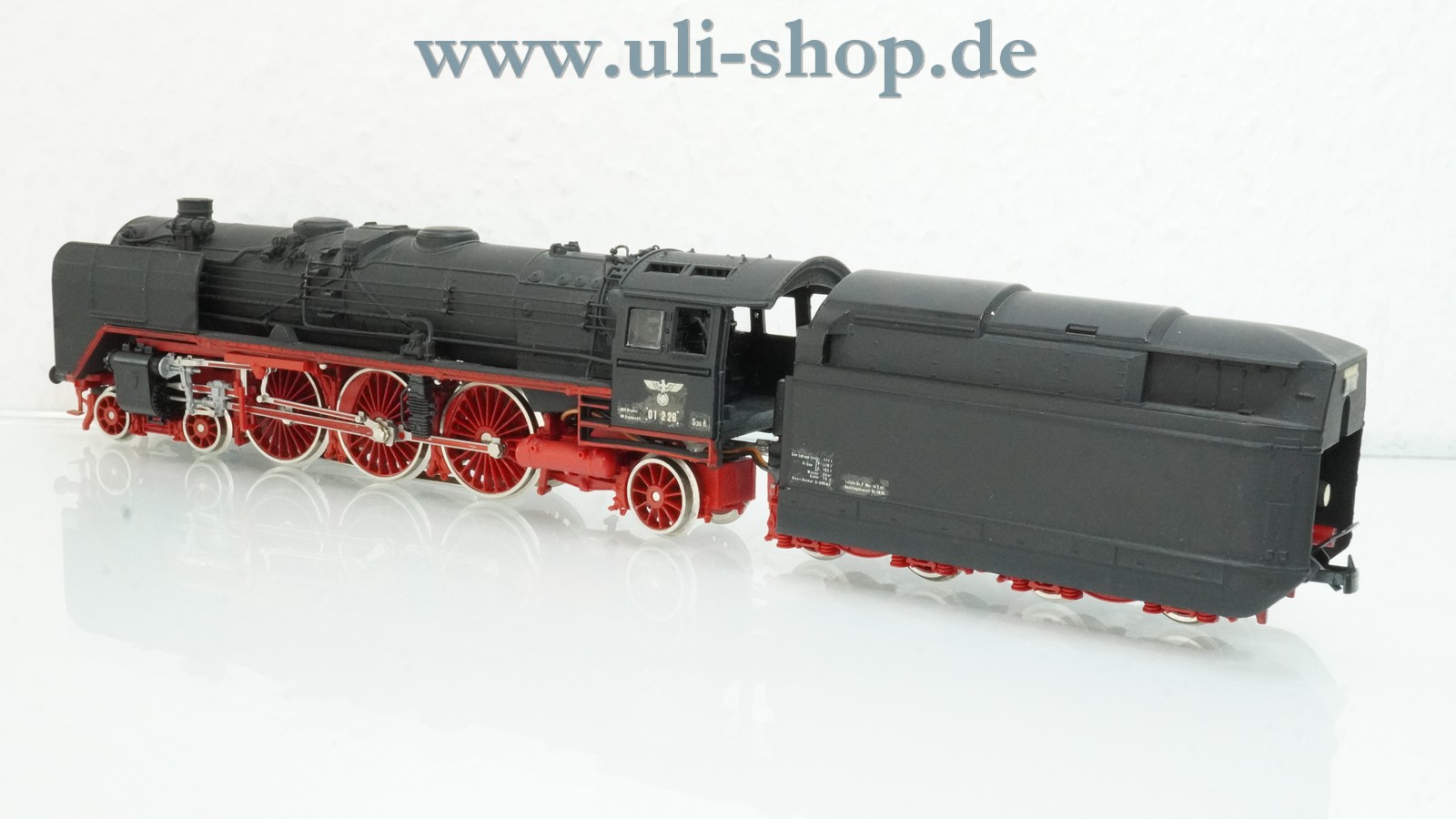 Roco H0 Dampflok Br. 01 226 der DR. Der Artikel ist für den Betrieb mit Wechselstrom vorgesehen. Die Lok ist mit einem Digital-Decoder ausgestattet. Die Originalverpackung ist leider nicht mehr vorhanden. Diese Lok ist ein Eigenbau auf Grundlage der Roco-Lokomotive 4119 C und des Tendergehäuses der Märklin-Lokomotive 3094. Das Modell soll die Ersatzlok für den Henschel-Wegmann-Zug darstellen.