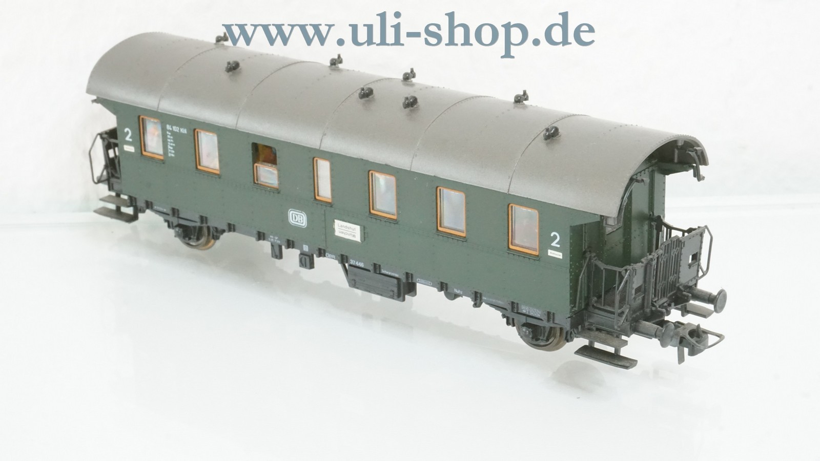 Roco H0 Personenwagen Donnerbüchse der DB 2. Klasse. Der Artikel ist für den Betrieb mit Gleichstrom vorgesehen. Die Originalverpackung ist leider nicht mehr vorhanden. Am Wagen fehlt ein Steckpuffer. Der Wagen ist mit Personen besetzt.