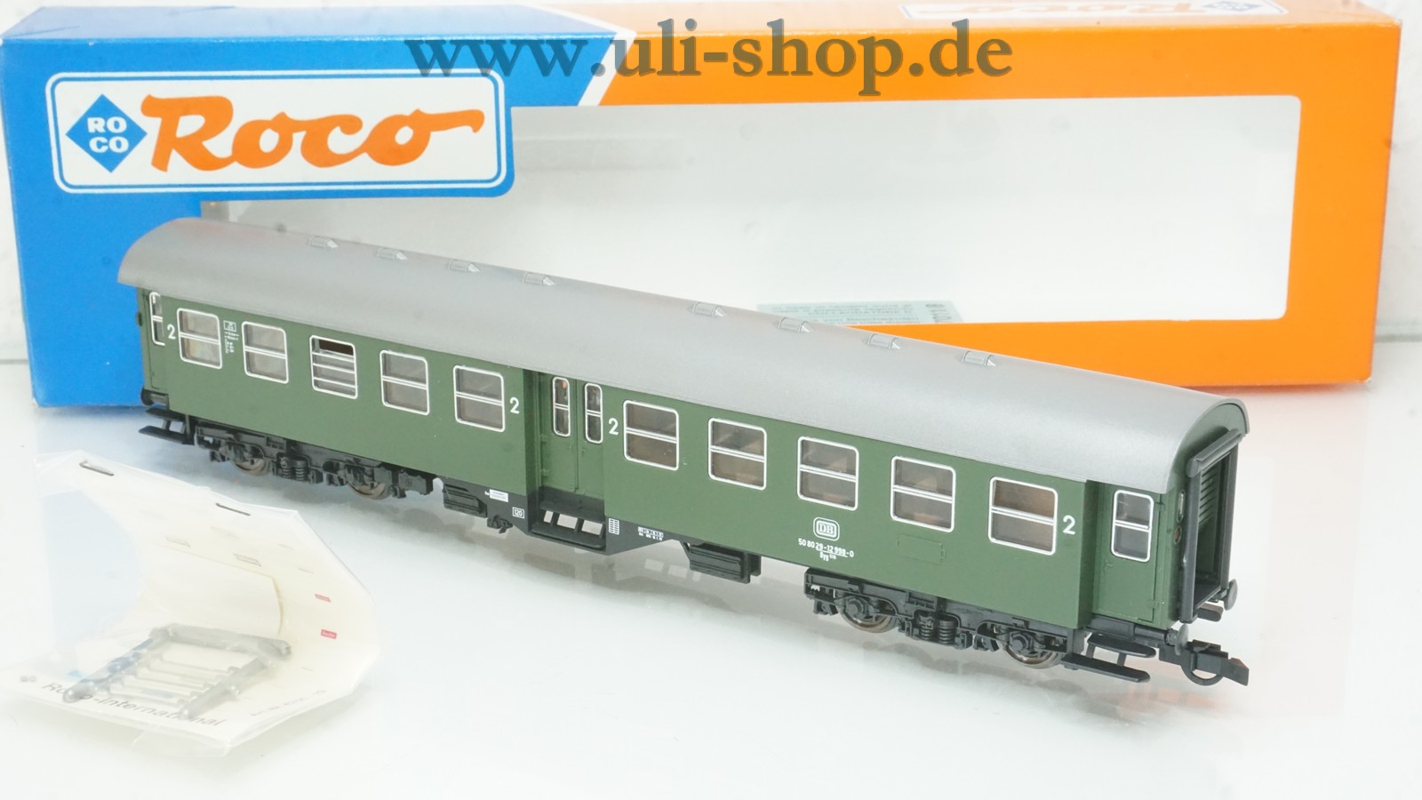 Roco H0 Personenwagen Umbauwagen 2. Klasse der DB. Der Artikel ist für den Betrieb mit Gleichstrom vorgesehen. Die Verpackung ist nicht die Originale, sie stammt von einem anderen Artikel.