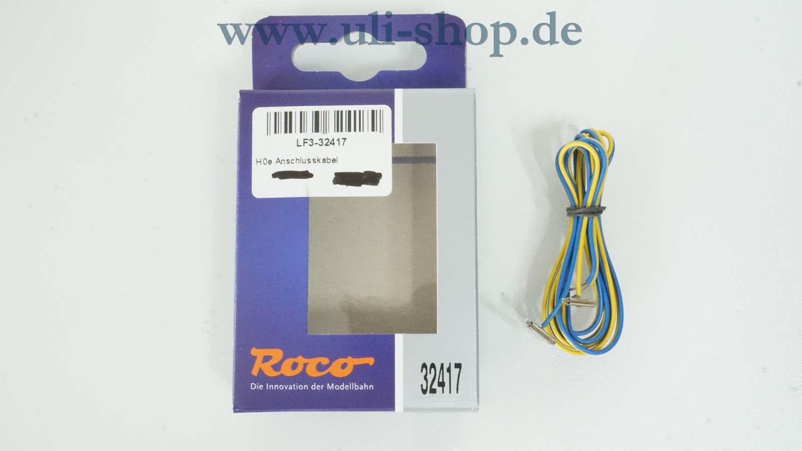 Roco H0e Gleismaterial mit der Artikelnummer 32417 Gleisanschlusskabel. Der Artikel ist für den Betrieb mit Gleichstrom vorgesehen. Bei dem Artikelbild handelt es sich um ein Musterbild, welches beispielhaft den Zustand des Artikels darstellen soll.