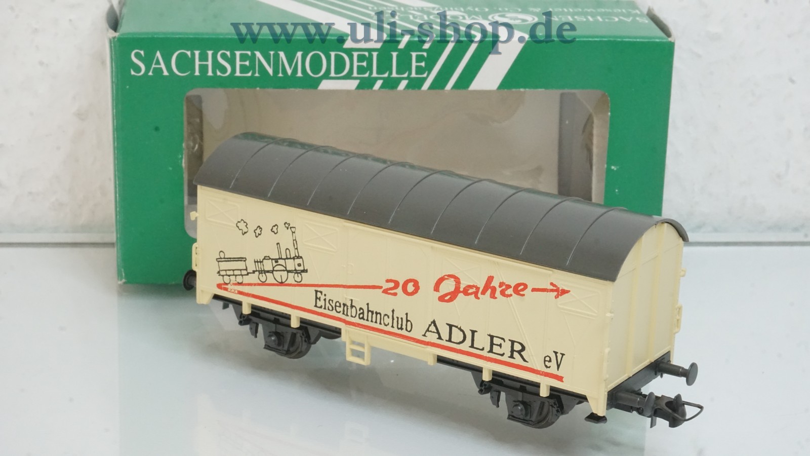 Sachsenmodelle H0 Güterwagen mit der Artikelnummer 18547 Werbewagen 20 Jahre Eisenbahnclub ADLER. Der Artikel ist für den Betrieb mit Gleichstrom vorgesehen. Die Originalverpackung ist vorhanden.