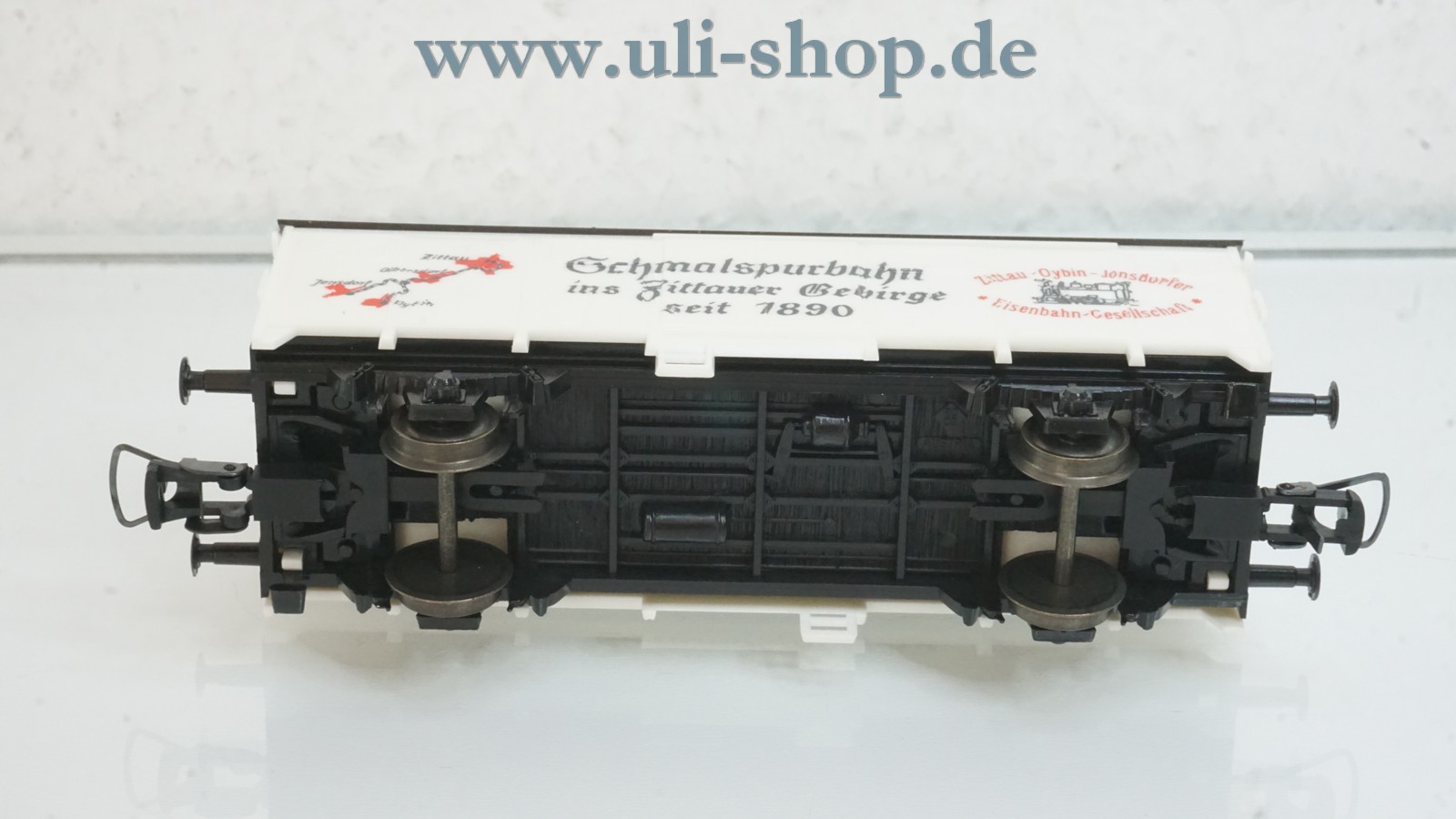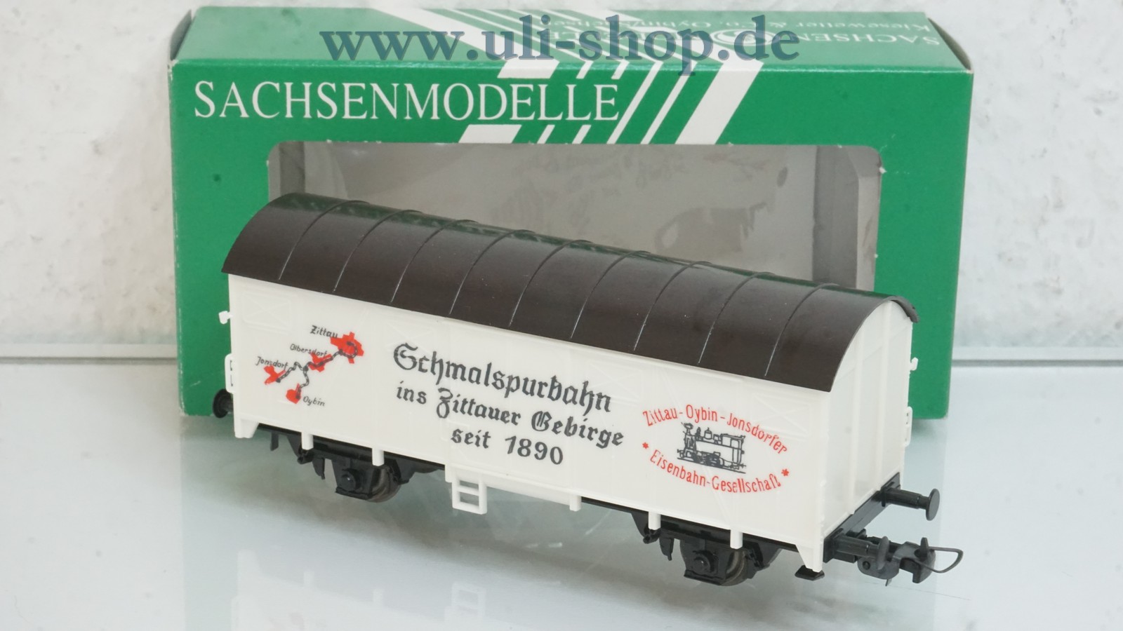 Sachsenmodelle H0 Güterwagen mit der Artikelnummer 18590 Werbewagen Schmalspurbahn Zittauer Gebirge. Der Artikel ist für den Betrieb mit Gleichstrom vorgesehen. Die Originalverpackung ist vorhanden.