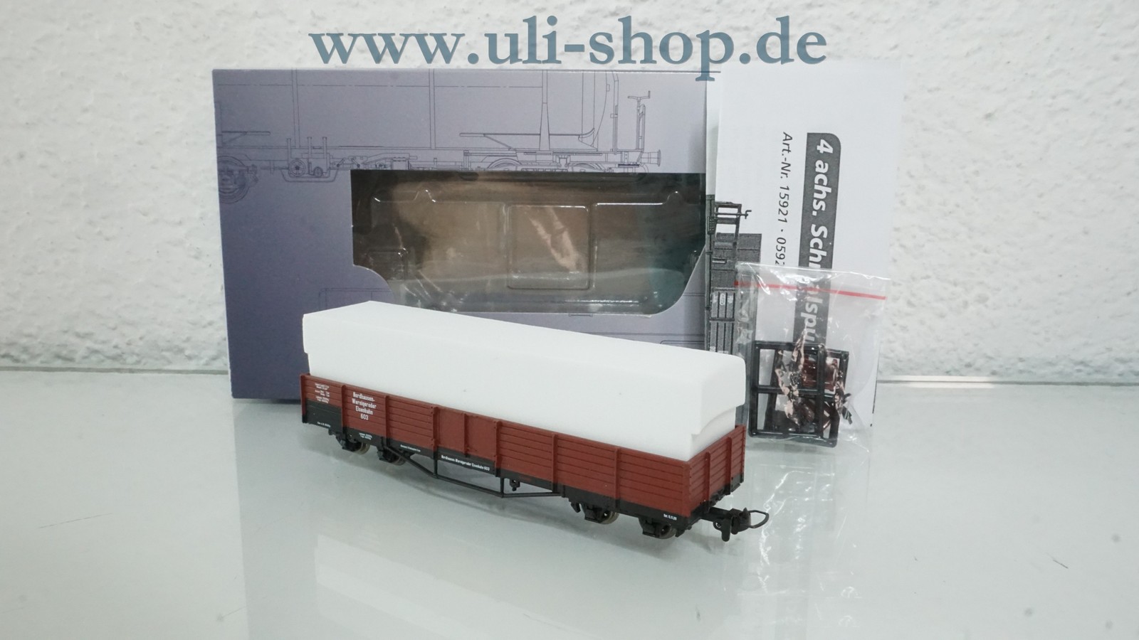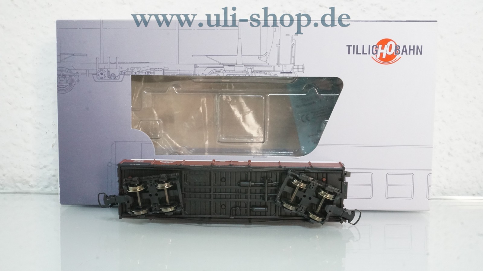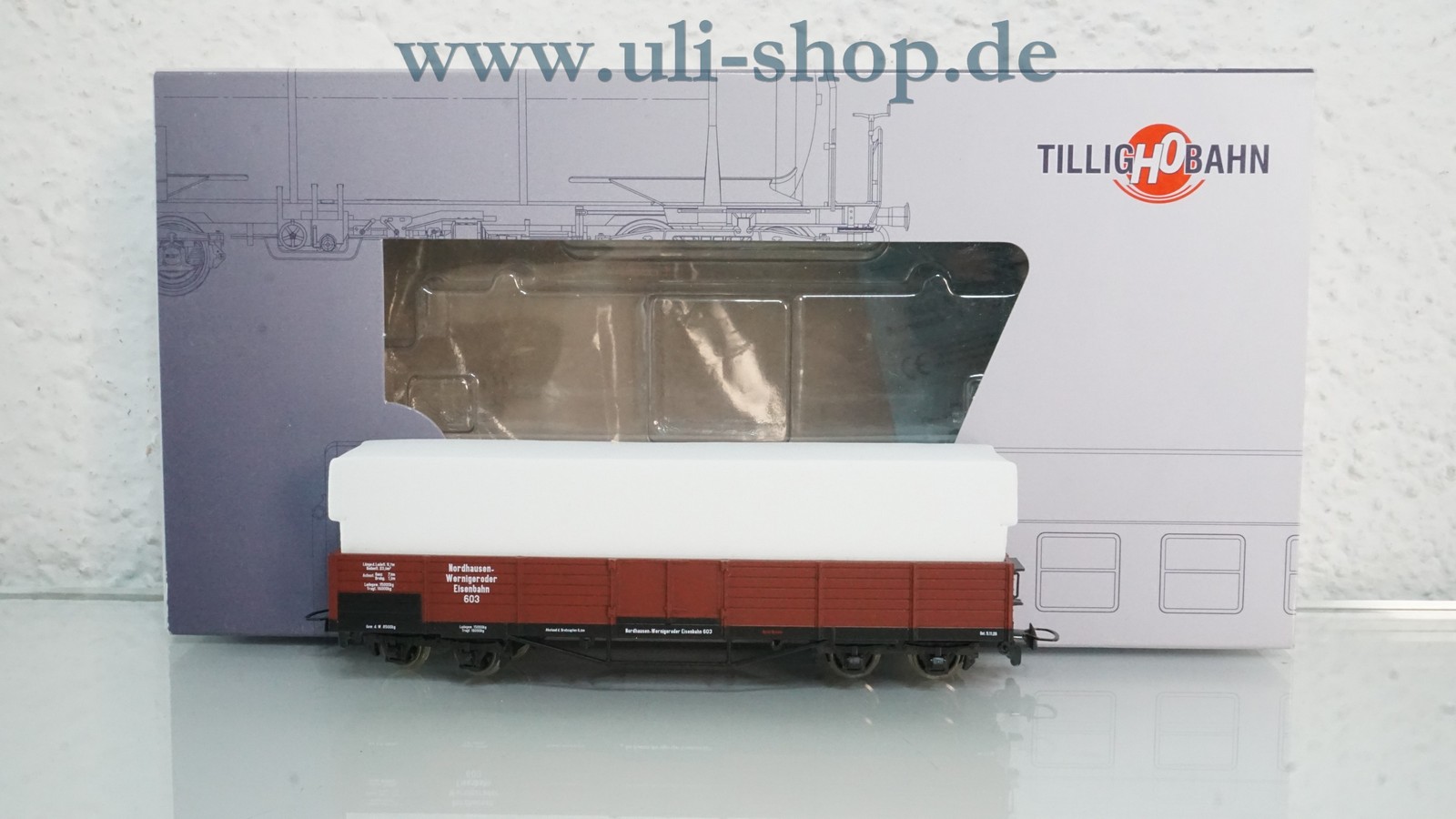 Tillig H0m Güterwagen mit der Artikelnummer 15922 offen mit Ladung der NWE. Der Artikel ist für den Betrieb mit Gleichstrom vorgesehen. Die Originalverpackung ist vorhanden.