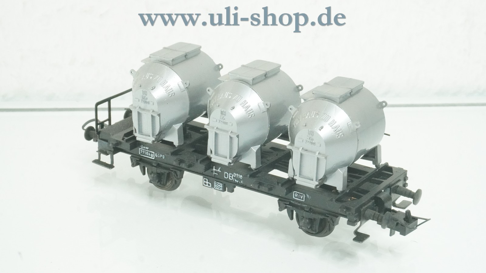 TRIX EXPRESS H0 Güterwagen mit der Artikelnummer 3459 Behältertragwagen von Haus zu Haus der DB. Der Artikel ist für den Betrieb mit Gleichstrom vorgesehen. Die Originalverpackung ist vorhanden.