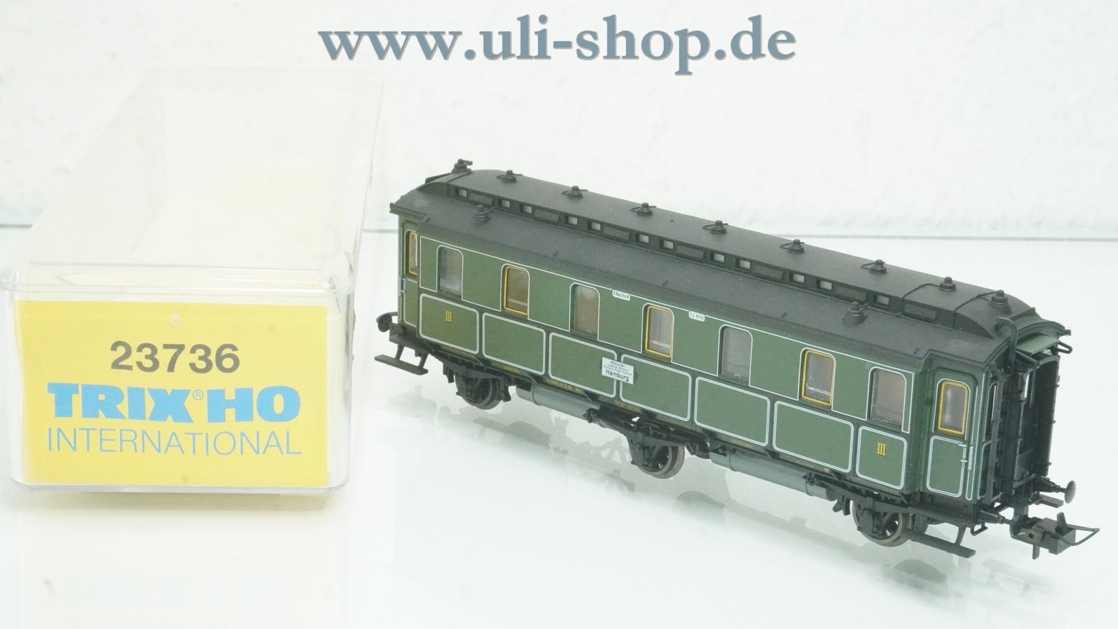 TRIX H0 Personenwagen mit der Artikelnummer 23736 Bayerischer D-Zug Wagen 3. Klasse. Der Artikel ist für den Betrieb mit Gleichstrom vorgesehen. Die Originalverpackung ist vorhanden.