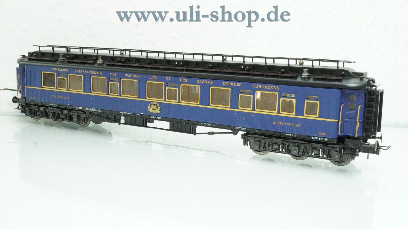 TRIX H0 Personenwagen mit der Artikelnummer 33395 Schlafwagen Nr. 1000 der CIWL "Orient-Express". Der Artikel ist für den Betrieb mit Gleichstrom vorgesehen. Die Originalverpackung ist leider nicht mehr vorhanden.