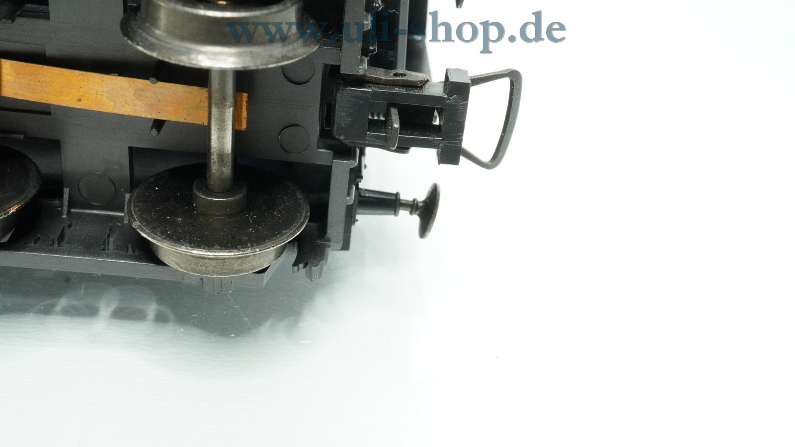 Den optischen Zustand würde ich als bespielt/gebraucht mit normalen Gebrauchsspuren (durch Spielbetrieb) bezeichnen. An einem Wagenende wurde zur Kabelführung ein Loch gebohrt. Ein Puffer ist beschädigt. Eine Griffstange ist beschädigt.