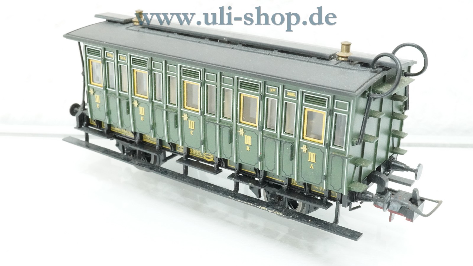 TRIX H0 Personenwagen mit der Artikelnummer 3716 Abteilwagen 3. Klasse 3895 der K.Bay.Sts.B. Der Artikel ist für den Betrieb mit Gleichstrom vorgesehen. Die Originalverpackung ist leider nicht mehr vorhanden.