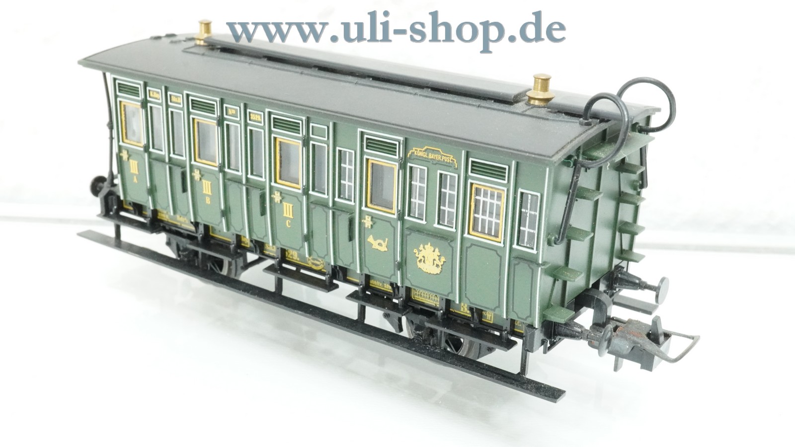 TRIX H0 Personenwagen mit der Artikelnummer 3717 Abteilwagen mit Postabteil 3529 der K.Bay.Sts.B. Der Artikel ist für den Betrieb mit Gleichstrom vorgesehen. Die Originalverpackung ist leider nicht mehr vorhanden.