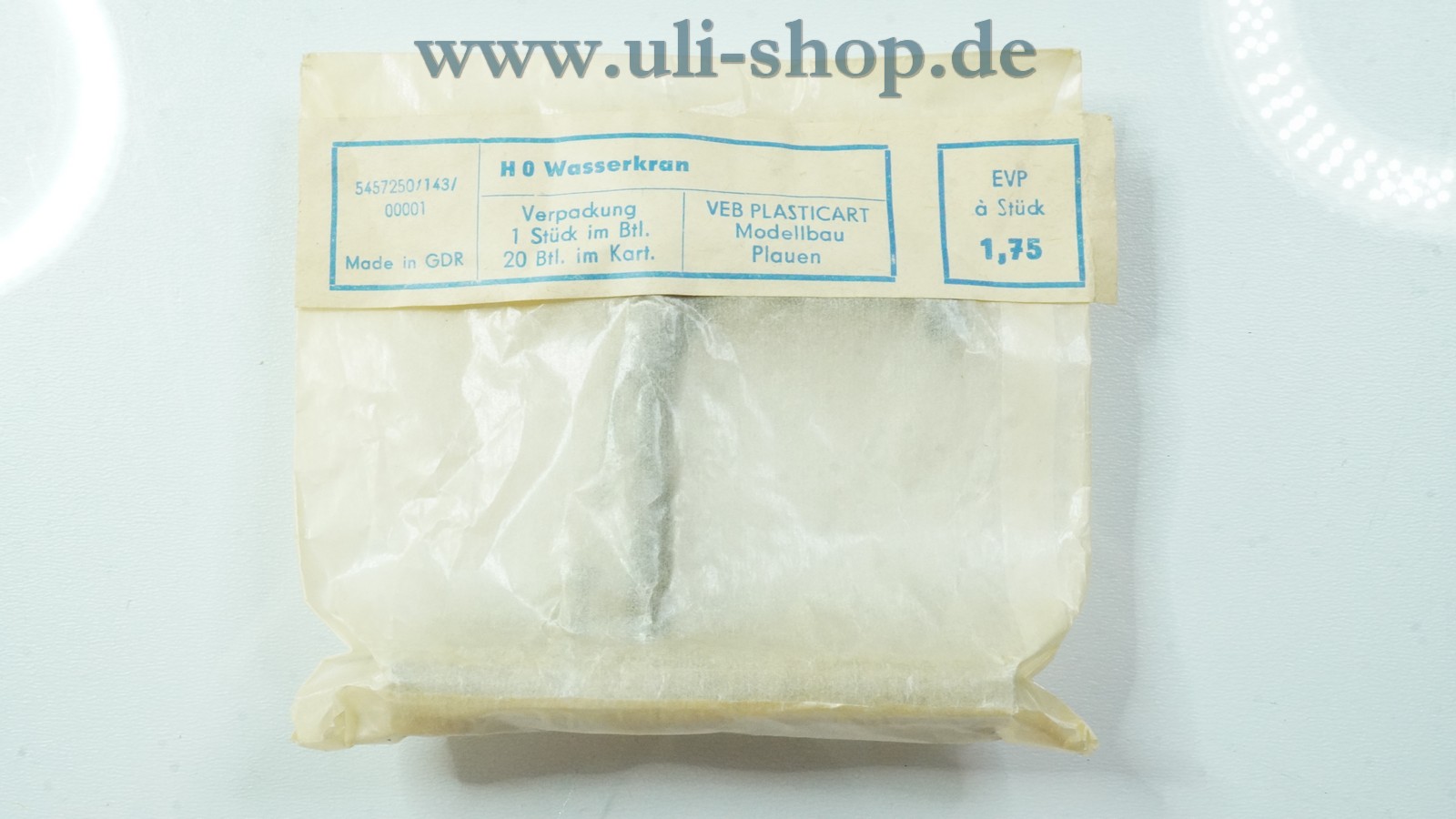 VEB Plasticart H0 mit der Artikelnummer 5457250/143/00001 Wasserkran ohne Funktion. Die Originalverpackung ist vorhanden.