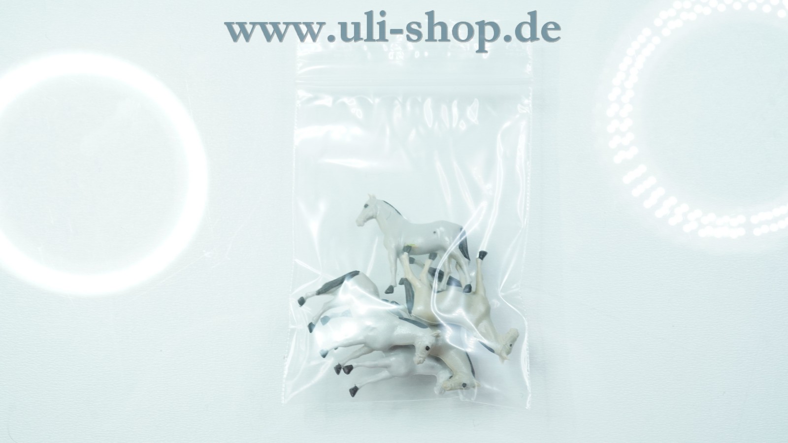 VEB Spielwarenfabrik Bernburg H0 5457970/510/049 Figuren 5 Pferde grau wenig bespielt/gebraucht