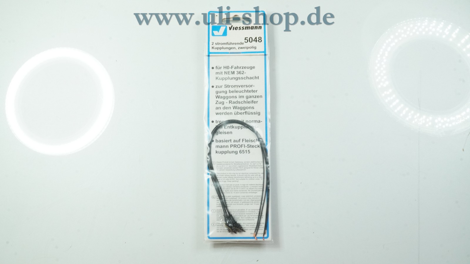 Viessmann H0 mit der Artikelnummer 5048 2 stromführende Kupplungen, zweipolig. Die Originalverpackung ist vorhanden.