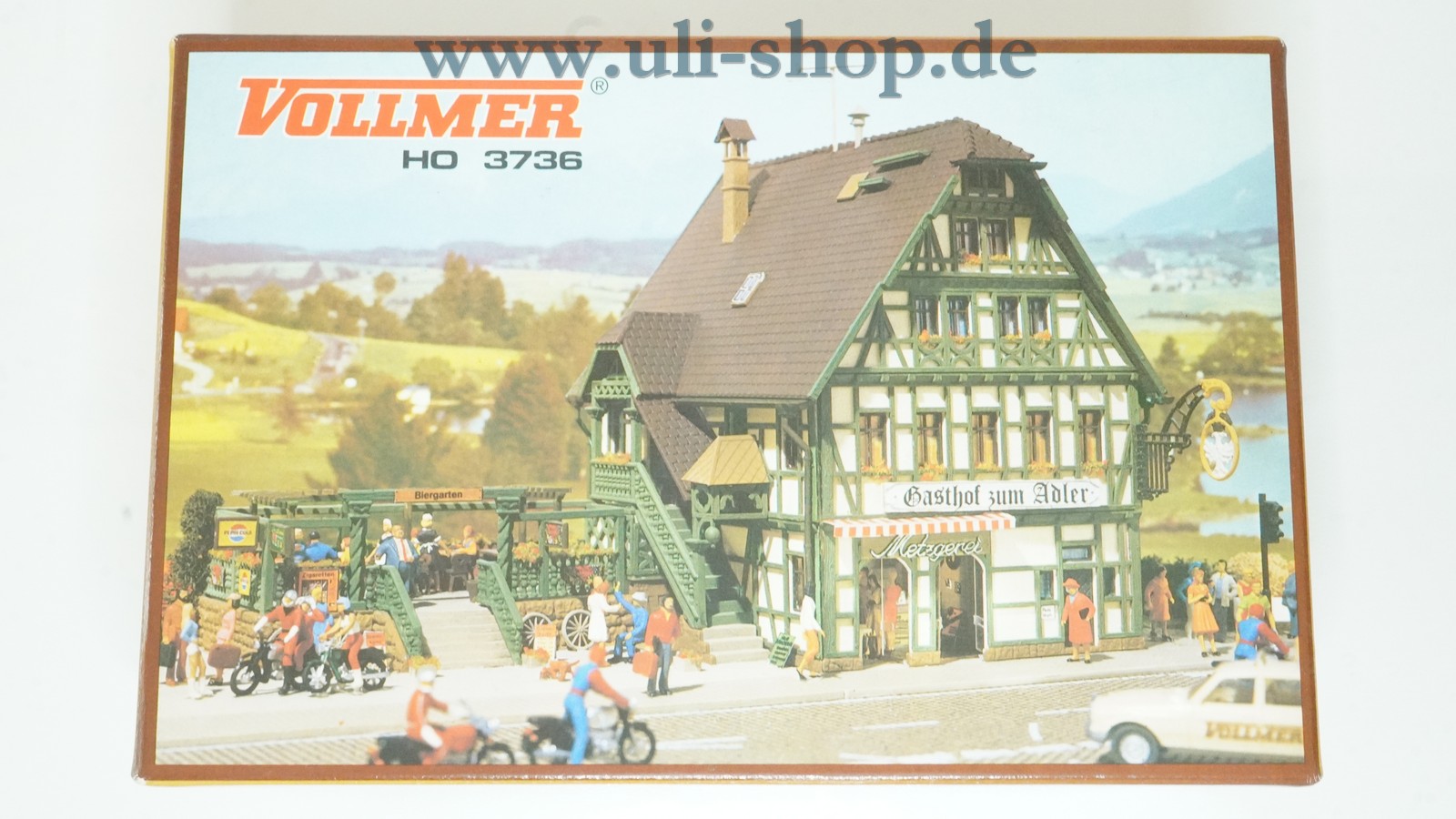 Vollmer H0 Modellhaus mit der Artikelnummer 3736 Gasthaus mit Metzgerei und Inneneinrichtung. Die Originalverpackung ist vorhanden.