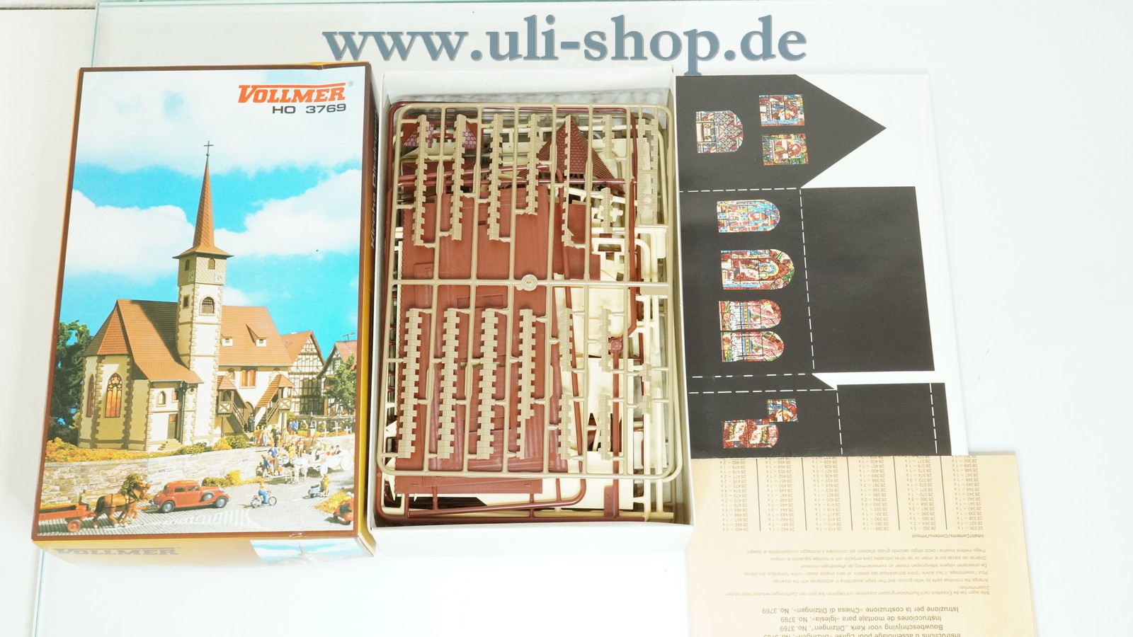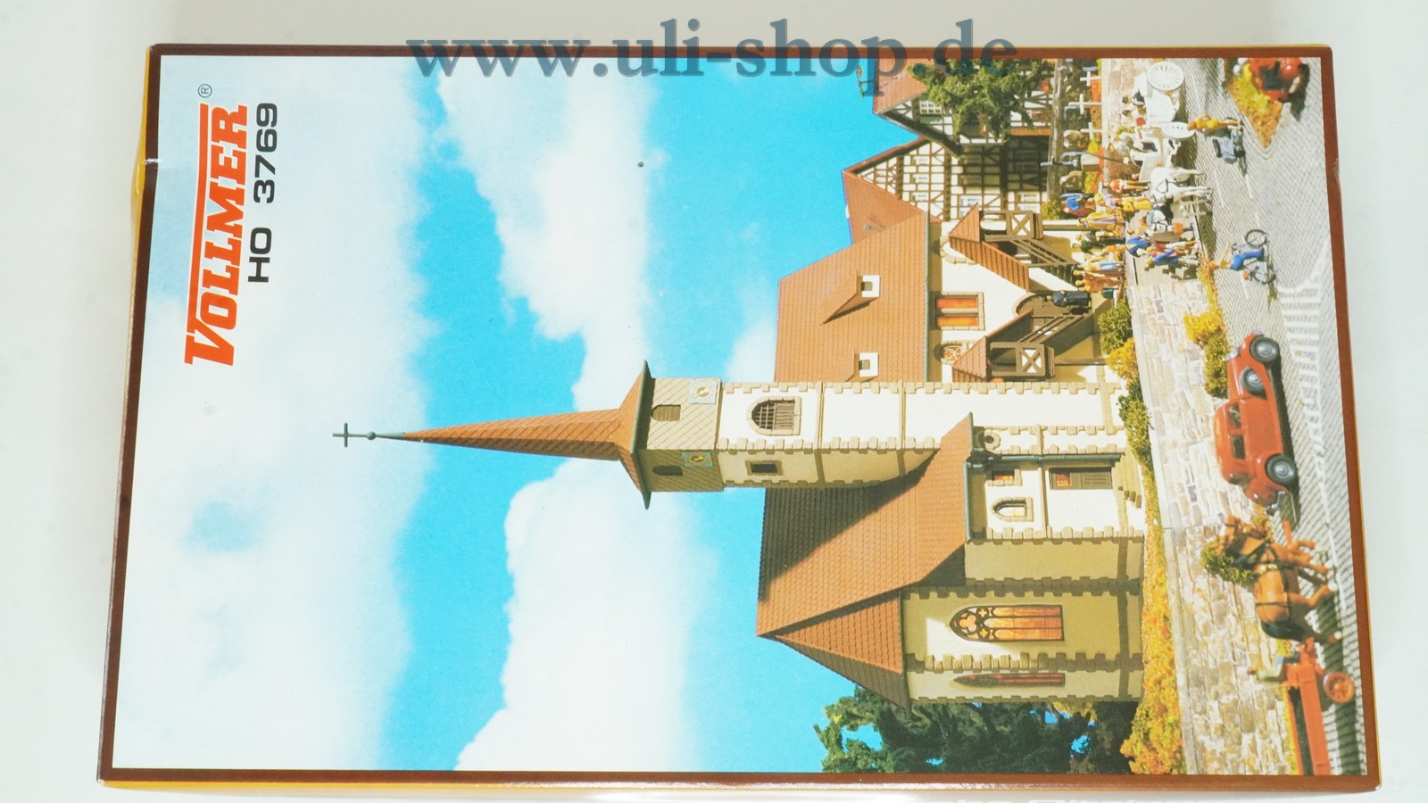 Vollmer H0 Modellhaus mit der Artikelnummer 3769 Kirche Ditzingen. Die Originalverpackung ist vorhanden. Die Verpackung des Bausatzes wurde schon einmal geöffnet. Wir können leider nicht mit Sicherheit behaupten, dass alle Teile vollständig vorhanden sind, es sieht aber danach aus. Sollte sich beim Zusammenbauen herausstellen, dass doch Teile fehlen, werden wir Ihnen den Kaufbetrag selbstverständlich zurückerstatten.