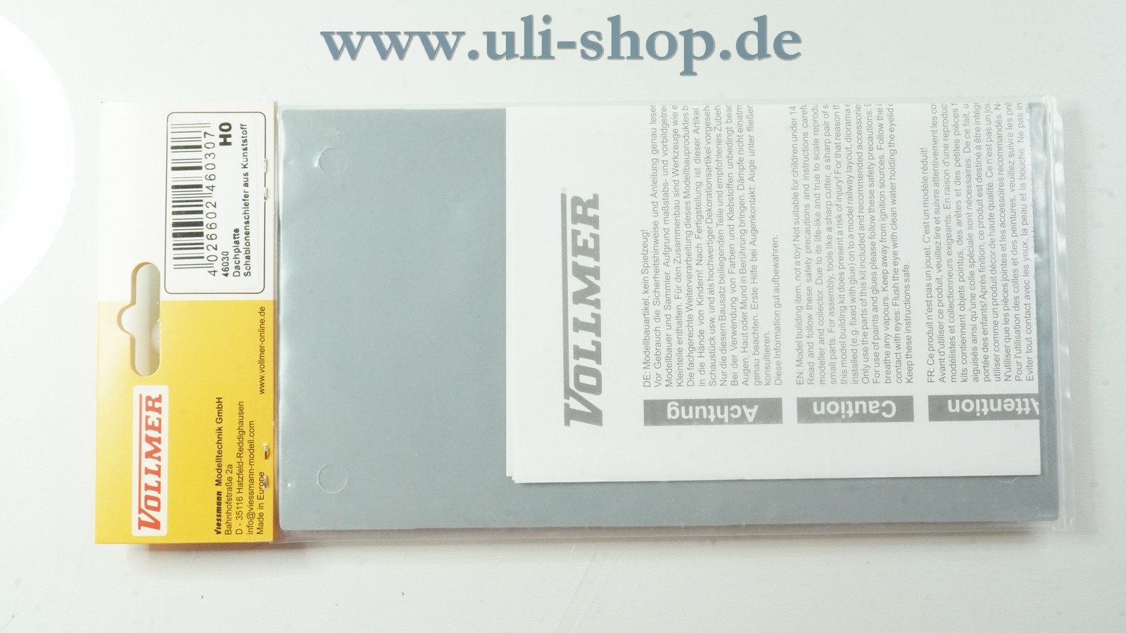 Vollmer H0 mit der Artikelnummer 46030 Dachplatte Schablonenschiefer. Die Originalverpackung ist vorhanden.