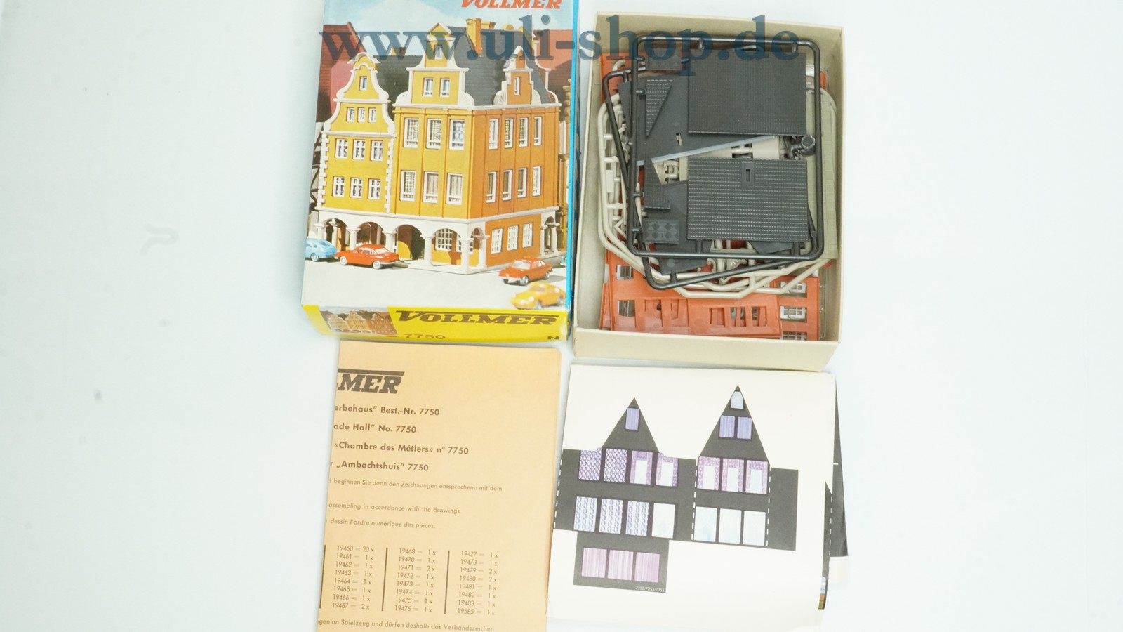 Vollmer N Modellhaus mit der Artikelnummer 7750 Gewerbehaus. Die Originalverpackung ist vorhanden. Die Verpackung des Bausatzes wurde schon einmal geöffnet. Wir können leider nicht mit Sicherheit behaupten, dass alle Teile vollständig vorhanden sind, es sieht aber danach aus. Sollte sich beim Zusammenbauen herausstellen, dass doch Teile fehlen, werden wir Ihnen den Kaufbetrag selbstverständlich zurückerstatten.